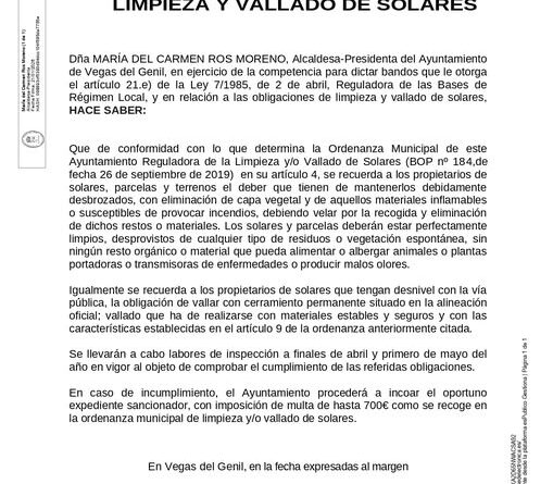 Bando municipal de limpieza y vallado de solares
